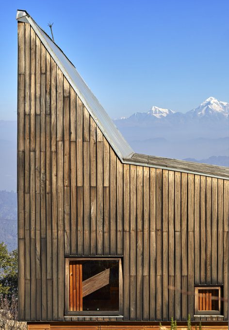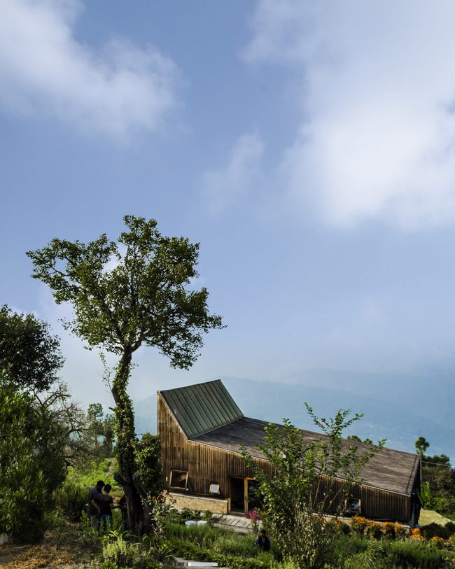 這座房子的設(shè)計考慮到了其周圍喜馬拉雅山脈白雪皚皚的自然景色,同時深深扎根于現(xiàn)有的未被破壞的梯田。這兩個壓倒性的景觀使得建筑被放置在梯田的最低級,與周圍的大環(huán)境相融合。