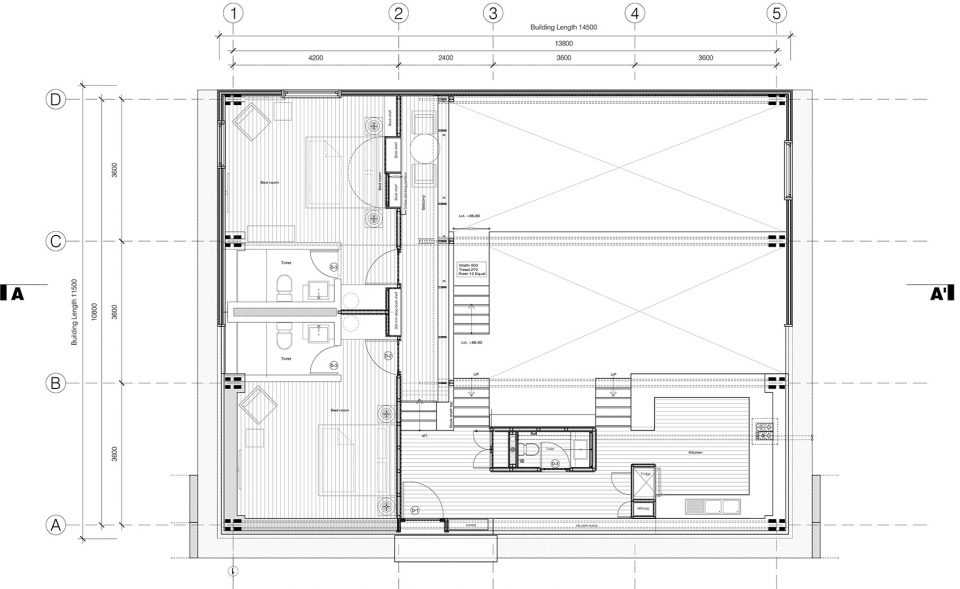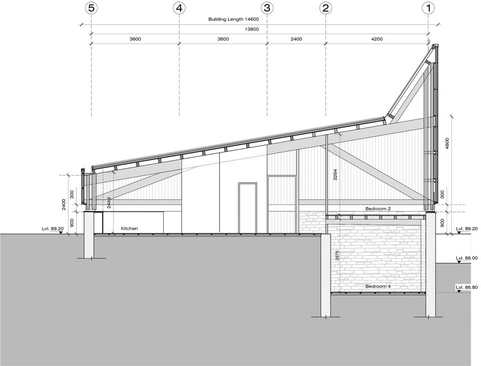 4個14.50 m跨度的sal木框架由多個膠合木板和薄鋼拉桿組成,支撐著整個用木材覆蓋的屋頂、隔熱的建筑外殼、整個木質(zhì)的夾層,并塑造了標(biāo)志性的雙層玻璃天窗。整個房子被懸掛在這些堅固的桁架框架中,沒有任何中間柱的支撐,使得一種不受干擾的地形輪廓流進(jìn)入靜謐的松木鑲板的室內(nèi)空間。精心雕琢的方形窗戶,朝向各個方向,讓使用者得以禪觀各個山峰和不斷變化的云。