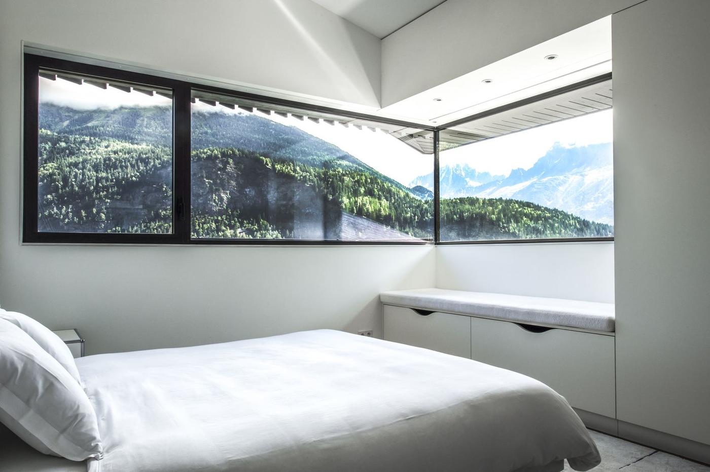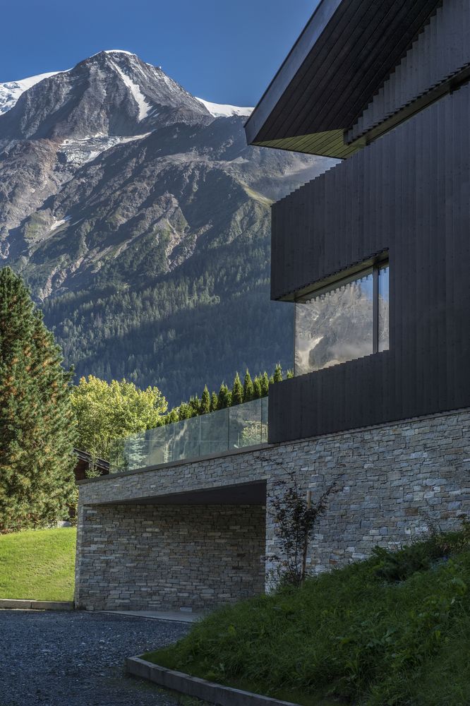 這個(gè)位置享有勃朗峰天際線壯麗的景色。這處雄偉的景觀視野是設(shè)計(jì)的出發(fā)點(diǎn)。