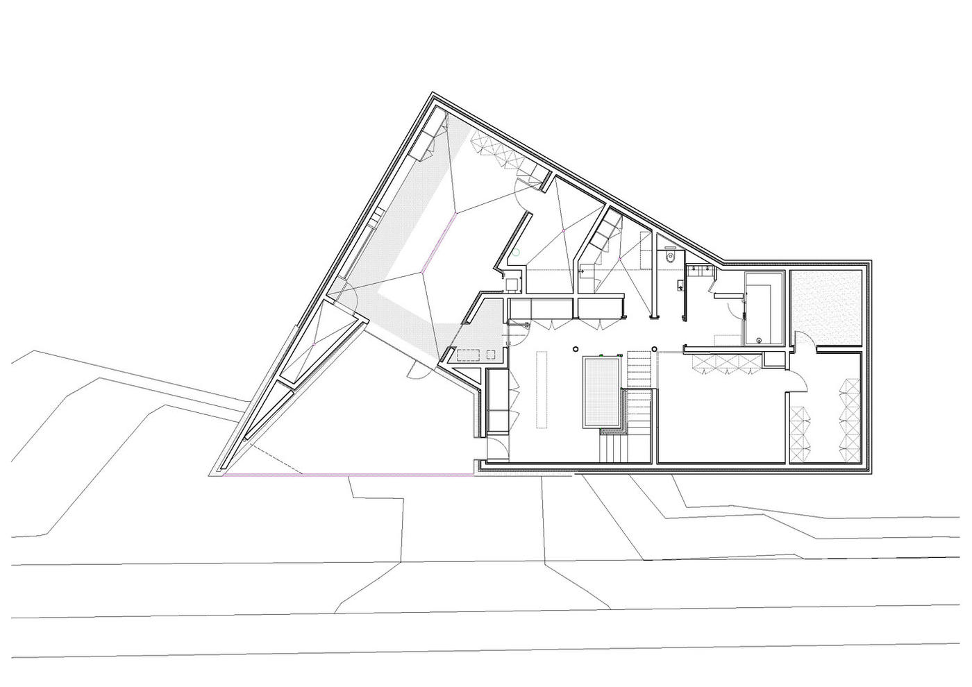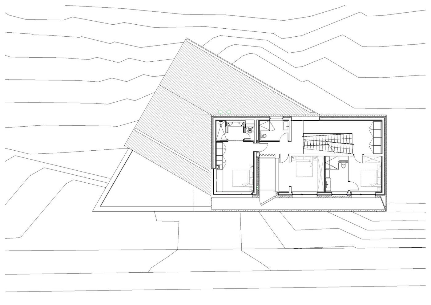 應(yīng)老客戶的要求,建筑師在夏蒙尼山谷設(shè)計(jì)了一座新的小屋,并監(jiān)督了它的建造過程。 其場(chǎng)地位于50年代建成的住宅區(qū)內(nèi)。從場(chǎng)地原始的總體規(guī)劃中可以看出這里以前也是一座小屋。