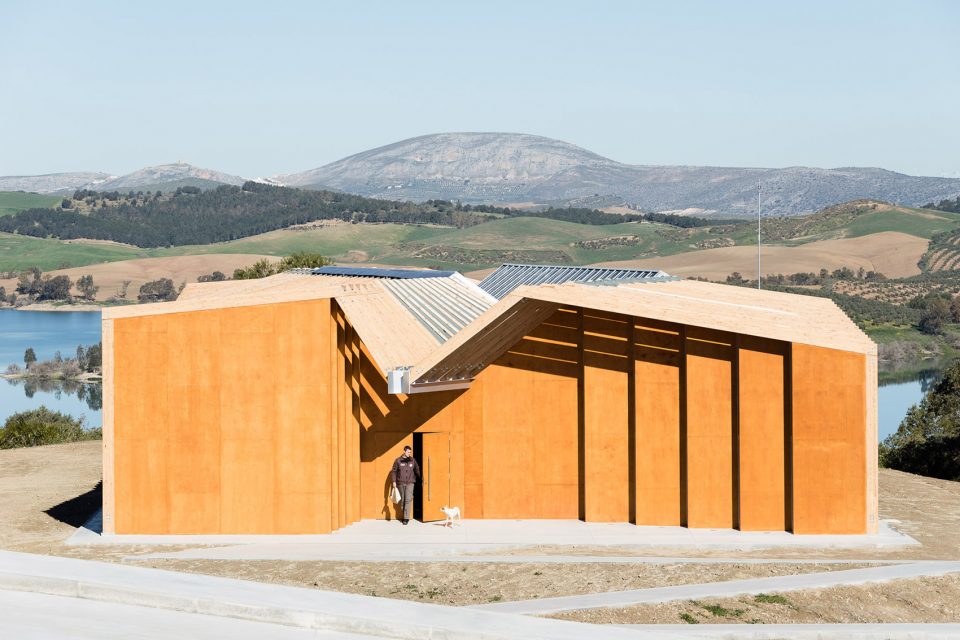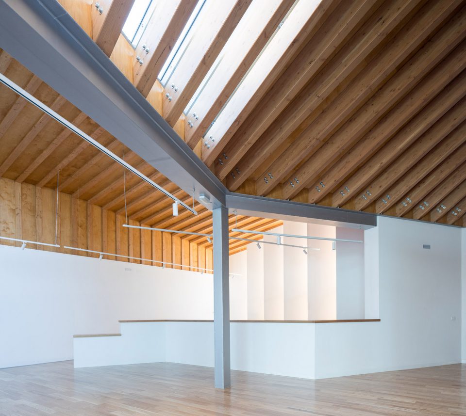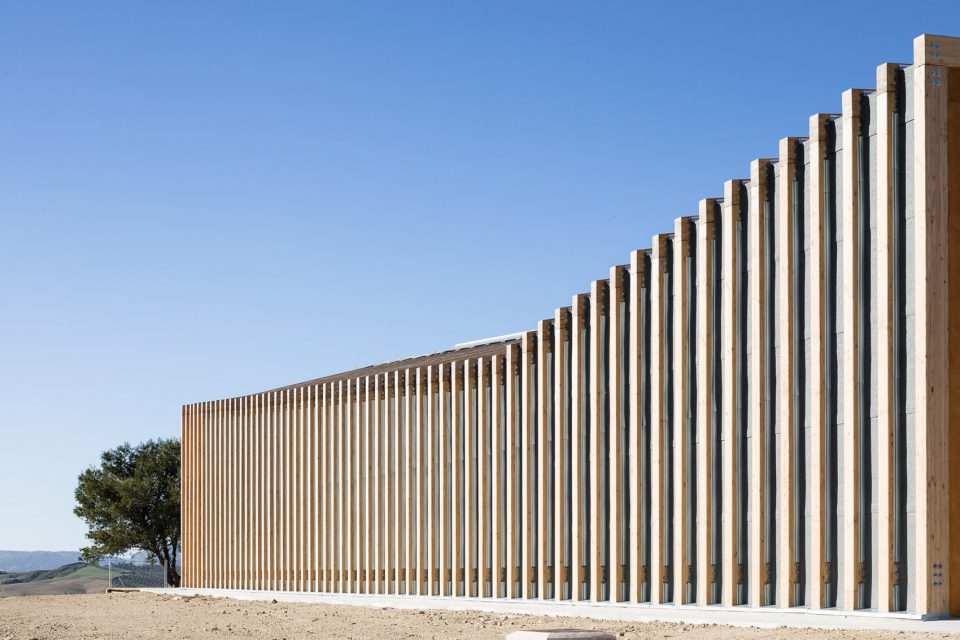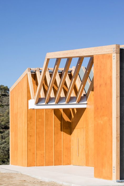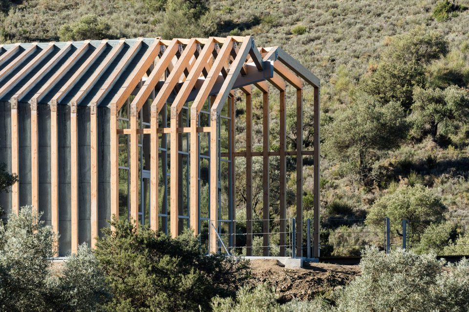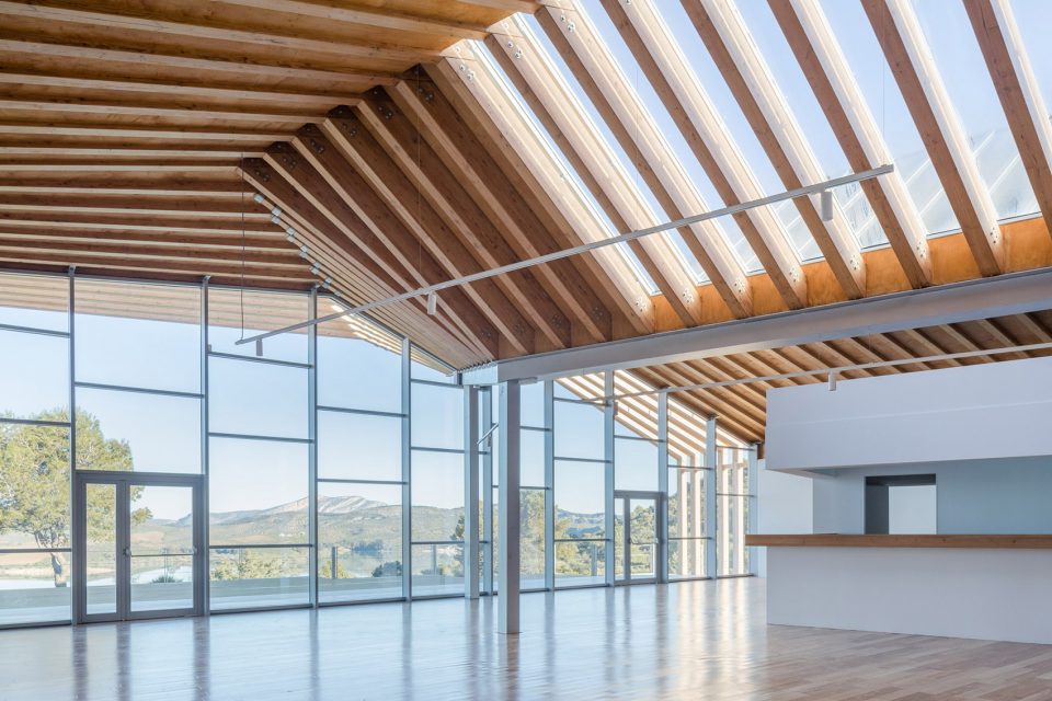 平行布置的木質(zhì)外框架形成了該建筑的主要特征,頂部的扭曲打破了嚴謹又富有秩序性的建筑外觀,創(chuàng)造了視覺的沖擊。外立面木結(jié)構(gòu)的夾縫間由木板加以防水涂層覆蓋,而末端縫隙則采用石板覆蓋。這種設計方式暗喻了峽谷的形成和對古道的解讀。建筑依靠光電板實現(xiàn)全部能源自給自足,并依靠Canadian well實現(xiàn)室內(nèi)通風。