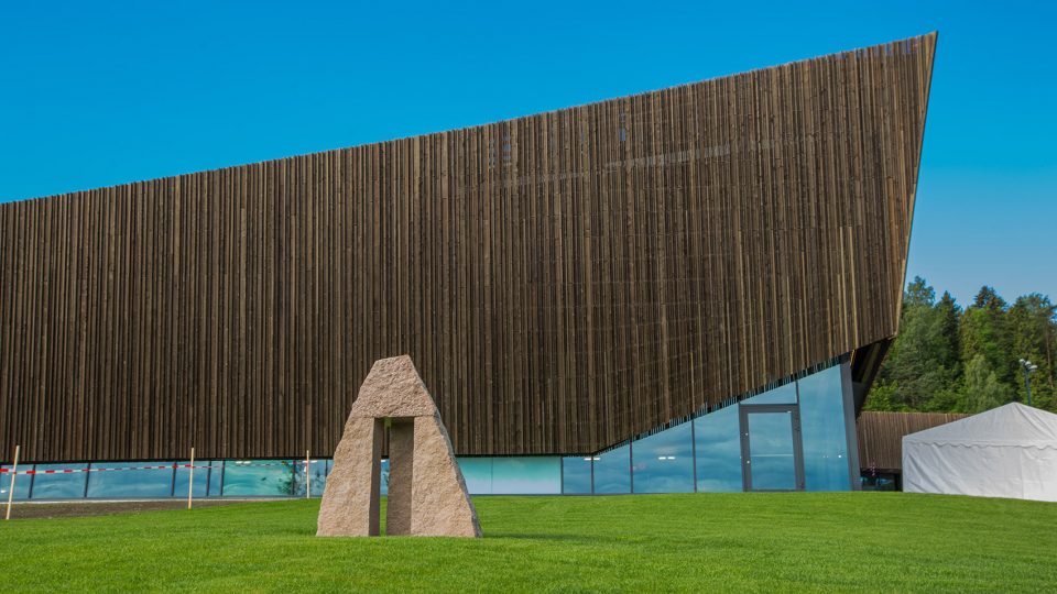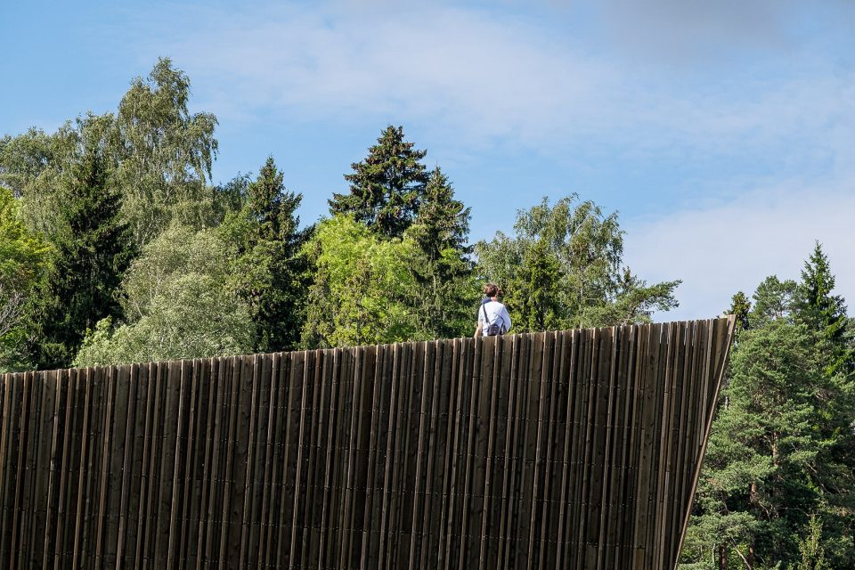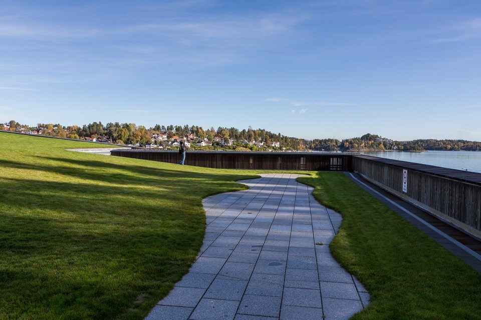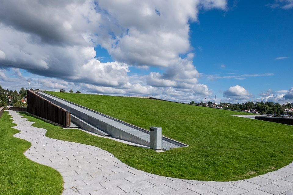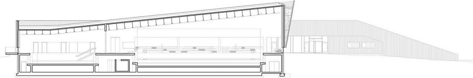 Holmen水上運(yùn)動(dòng)中心位于Holmen海灘,這里經(jīng)過填海造陸,保護(hù)和鞏固了場(chǎng)地的自然屬性。整個(gè)場(chǎng)地被花園覆蓋,為海灘帶來(lái)非凡的美景。該項(xiàng)目旨在活化建筑的屋頂,使之成為海灘休閑區(qū)域的一部分。鋪滿植被的屋頂向南面傾斜,在Oslo fjord的群島和礁石之上形成連續(xù)不斷的景觀。主入口、接待處、更衣室和游泳池皆位于建筑的主樓層,凌駕于向建筑方向傾斜的草坪之上。低處的樓層則容納了體育館、多功能廳、設(shè)備間以及辦公設(shè)施等。