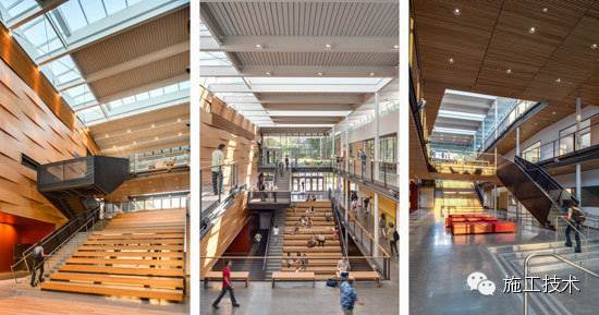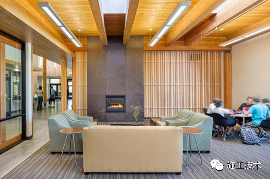 俄勒岡州中部卡斯卡德學院掩映在杜松和黃松樹林間,坐落在一個火山巖石的緩坡上,由西部鐵杉、紅雪松與杜松等木頭建造,以營造自然、健康的學習環(huán)境;以平臺 木框架和預先設計的木桁架降低施工成本,并在有限的預算和時間內完成,提供同學與教師們一個鼓舞人心、自在開放的空間。