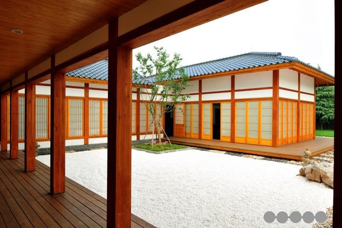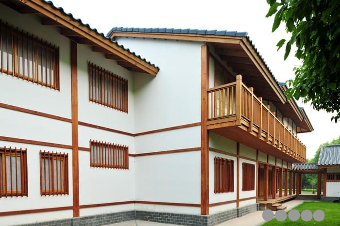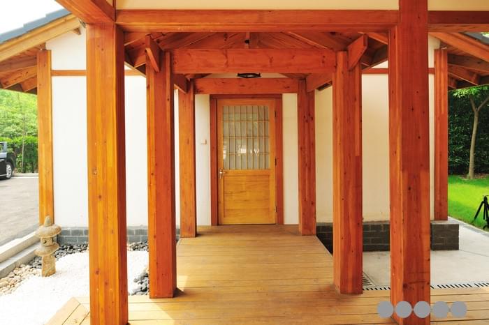 這是一座會(huì)所性建筑,一樓有接待門廳、保安室、會(huì)議室、會(huì)客大廳、酒吧視聽室、棋牌室、獨(dú)立車庫等。本案設(shè)計(jì)建造者十分感慨的一點(diǎn)是,日本建筑業(yè)在堅(jiān)持傳統(tǒng)的基礎(chǔ)上大量吸引現(xiàn)代歐美的木建筑概念,包括結(jié)構(gòu)和節(jié)點(diǎn)方式,新的材料工業(yè)進(jìn)步以及建筑的節(jié)能保溫方法等,使得傳統(tǒng)的日式建筑得以在充實(shí)革新后,不斷發(fā)展,仍然可以滿足今天人們的生活居住要求。從中可以給眾多致力于繼承和發(fā)揚(yáng)中國自身建筑傳統(tǒng)的專業(yè)人士啟示。
