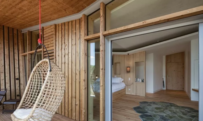 項(xiàng)目中所運(yùn)用的斜線,以及接待處微微傾斜的角度與后面的圓形沙丘和線性冠層形成鮮明的對比。建筑與環(huán)境之間的和諧關(guān)系不是建立在模仿的基礎(chǔ)上,而是由一種截然相反的同源性來定義的。這些小的、獨(dú)立的單位被安置在水面上,它們是景觀中的一個重要的節(jié)點(diǎn),與自然共同形成一個持續(xù)的有機(jī)環(huán)境。不同的路徑在山之間蜿蜒盤旋,以基地上各種不同的視角,你可以清晰地感覺到它的真實(shí)性。