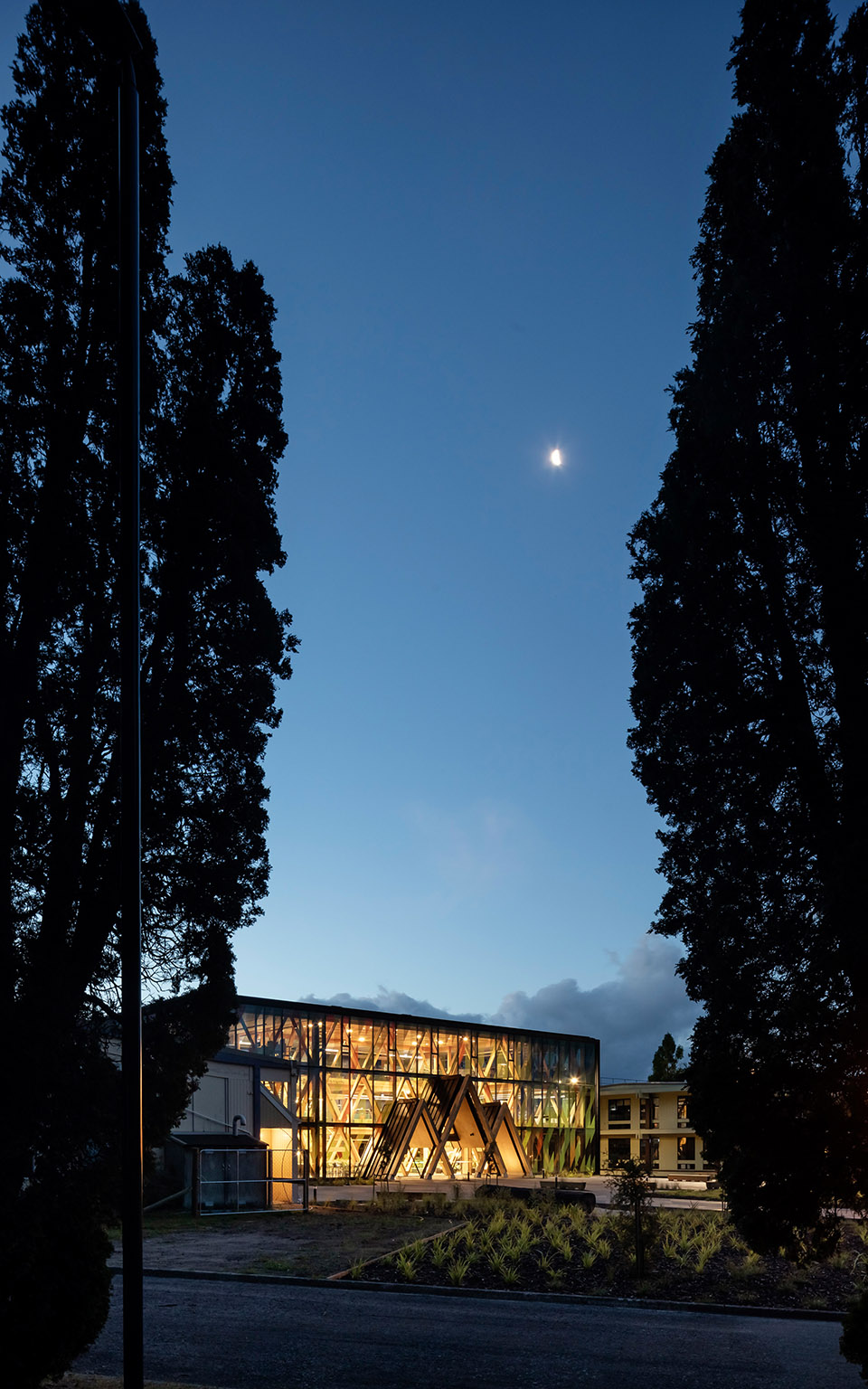 “Te Whare Nui o Tuteata”研究中心邀請研究人員、木材行業(yè)從業(yè)者,以及社區(qū)大眾來共同領(lǐng)略木材研究創(chuàng)新的價值,力求將自身與研究中心的理念化作未來發(fā)展的一部分。該建筑不僅僅為大眾展示出一個真實(shí)的木結(jié)構(gòu)建筑原型,同時預(yù)示了更多未來木結(jié)構(gòu)建筑的可能性,堪稱新西蘭實(shí)現(xiàn)2050年零碳排放道路上的里程碑。設(shè)計(jì)團(tuán)隊(duì)希望每個人都能夠參與到這場冒險(xiǎn)中,通過可持續(xù)地利用木材資源,提高人們對生態(tài)的責(zé)任感與參與度,正如上文中所號召的那樣“走進(jìn)我們共同的森林”。該建筑被命名為“Te Whare Nui o Tuteata”,由Ngā Hapū e Toru贈與,傳承了tupuna Tuteata的精神,與當(dāng)?shù)孛幕椭苓叚h(huán)境緊密相連。